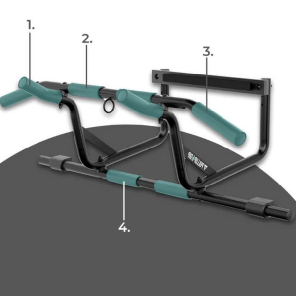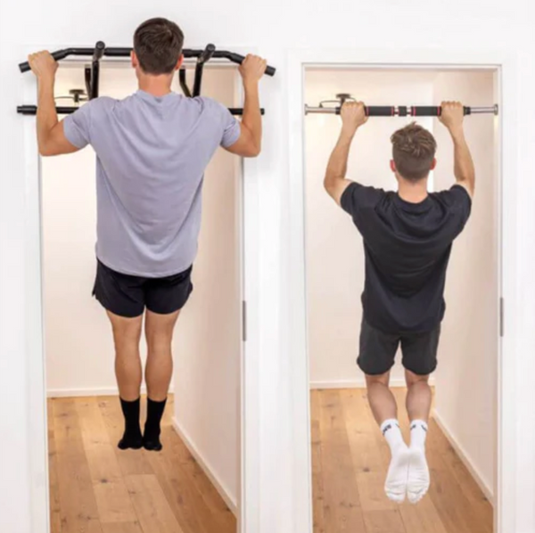 The doorway pull-up bar for the door frame can be fixed to the door frame - turning your home into a personal gym in seconds. Train many exercises, including pull-ups, leg lifts, knee lifts, toes to bar or on the floor exercises such as sitting dips or push-ups - allowing you to make your workout 100% flexible and independent of the crowded gym. The pull-up bar is the perfect alternative if you are looking for a high-quality pull-up bar that you don't want to or are unable to mount on the wall or ceiling.
