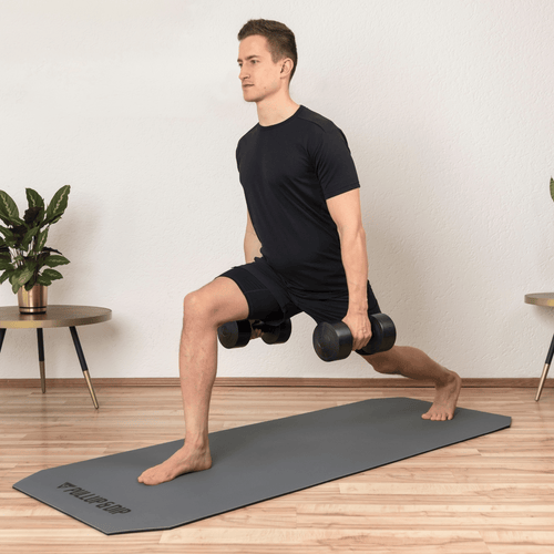 Our two-layer exercise mat from Pullup & Dip ® offers you the perfect training surface for your bodyweight, yoga, HIIT, Pilates, jump rope, or another workout. Ensure the most comfortable workout experience thanks to two layers: The PU synthetic leather on the top is abrasion-proof, slip-resistant, sweat-proof, and offers the perfect training surface. The cushioning material on the lower side made of TPE offers you soft, joint-friendly cushioning and is also slip-resistant so that your exercise mat does not slip away during your workout.