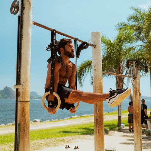 The gymnastic rings can be used in addition to our pull-up bars, so you can carry out many more exercises and complement your Freeletics or Calisthenics training.
