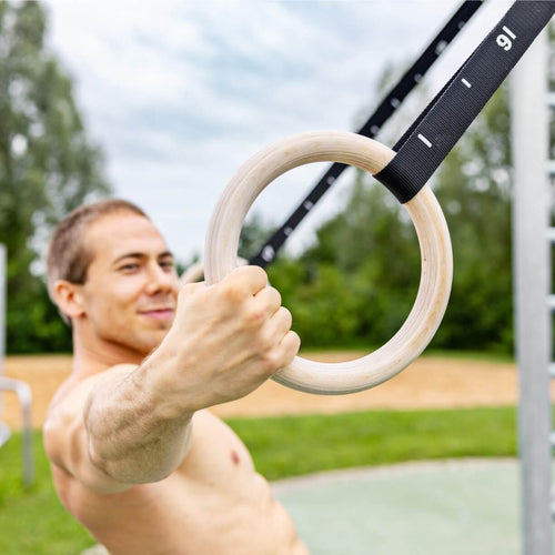 Absolutely! The wooden rings are weatherproof, the straps are robust and waterproof - ideal for your outdoor training in the park, garden or on the go.