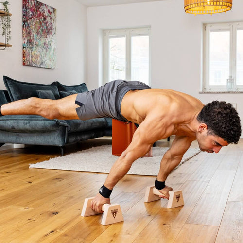 Wooden push-up grips with wrist wraps - your perfect training partner