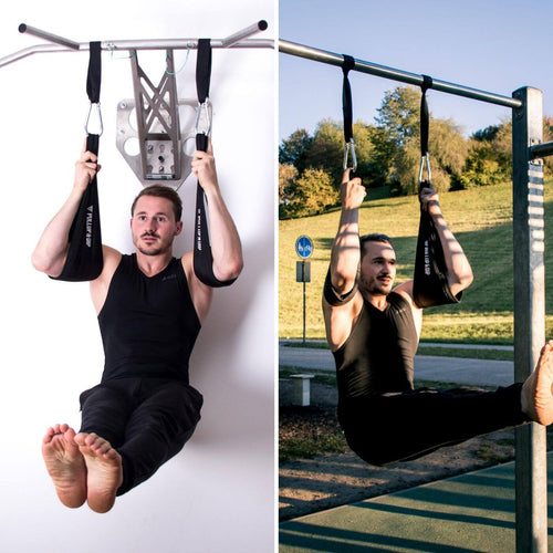 The abdominal training loops are suitable for all types of pull-up bars - be it on the wall, on the ceiling, on door frames or on horizontal bars in calisthenics parks.